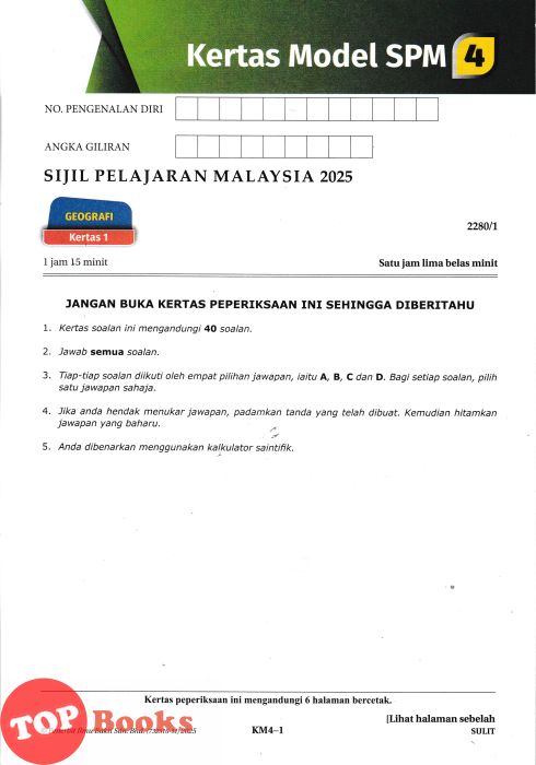 [TOPBOOKS Ilmu Bakti] Kertas Model Aspirasi A+ SPM Geografi (2025)