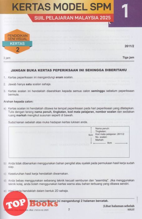 [TOPBOOKS Ilmu Bakti] Koleksi Kertas Model SPM Pendidikan Seni Visual (2025)