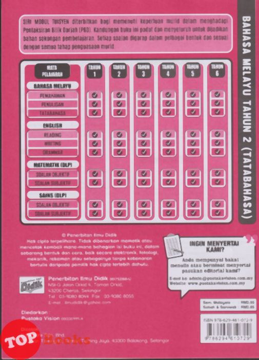 Siri Modul Tuisyen Diterbitkan Bagi Memenuhi Keperluan Murid Dalam Menghadapi Pentaksiran Bilik Darjah (PBD). Kandungan Buku Ini Padat Dan Menyeluruh Untuk Dijadikan Bahan Sokongan Pembelajaran. Setiap Soalan Digarap Dalam Pelbagai Bentuk Dan Sesuai Dengan Semua Tahap Penguasaan Murid