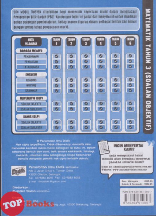 Siri Modul Tuisyen Diterbitkan Bagi Memenuhi Keperluan Murid Dalam Menghadapi Pentaksiran Bilik Darjah (PBD). Kandungan Buku Ini Padat Dan Menyeluruh Untuk Dijadikan Bahan Sokongan Pembelajaran. Setiap Soalan Digarap Dalam Pelbagai Bentuk Dan Sesuai Dengan Semua Tahap Penguasaan Murid