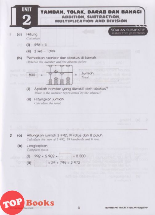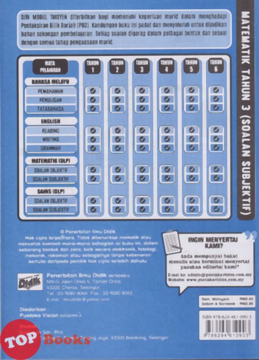 [TOPBOOKS Ilmu Didik] Modul Tuisyen Edisi Baharu Matematik Soalan Subjektif Tahun 3 KSSR Semakan DLP (2026)