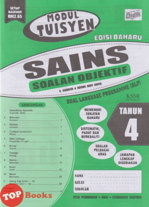 Siri Modul Tuisyen Diterbitkan Bagi Memenuhi Keperluan Murid Dalam Menghadapi Pentaksiran Bilik Darjah (PBD). Kandungan Buku Ini Padat Dan Menyeluruh Untuk Dijadikan Bahan Sokongan Pembelajaran. Setiap Soalan Digarap Dalam Pelbagai Bentuk Dan Sesuai Dengan Semua Tahap Penguasaan Murid