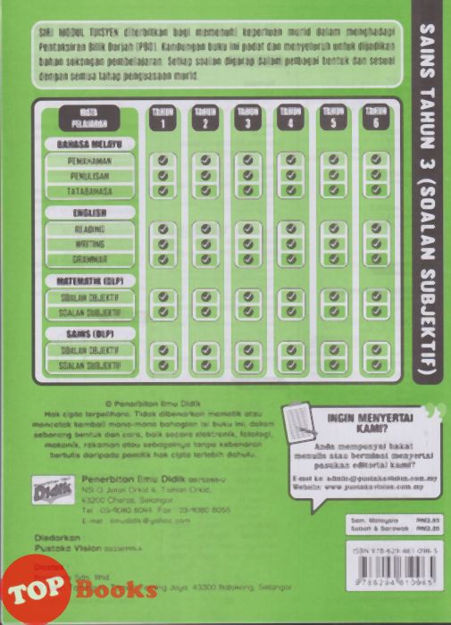 Siri Modul Tuisyen Diterbitkan Bagi Memenuhi Keperluan Murid Dalam Menghadapi Pentaksiran Bilik Darjah (PBD). Kandungan Buku Ini Padat Dan Menyeluruh Untuk Dijadikan Bahan Sokongan Pembelajaran. Setiap Soalan Digarap Dalam Pelbagai Bentuk Dan Sesuai Dengan Semua Tahap Penguasaan Murid