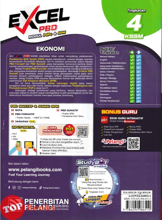 Product Image [TOPBOOKS Pelangi] Excel PBD Ekonomi Tingkatan 4 KSSM (2026)
