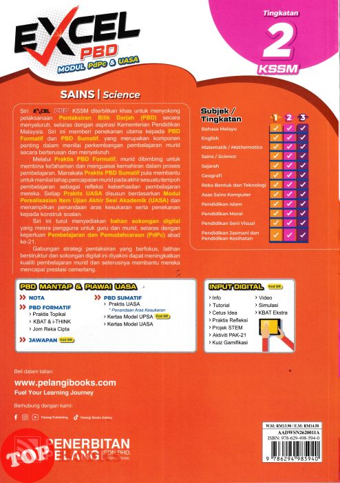 [TOPBOOKS Pelangi] Excel PBD Sains Tingkatan 2 KSSM Dwibahasa (2026)