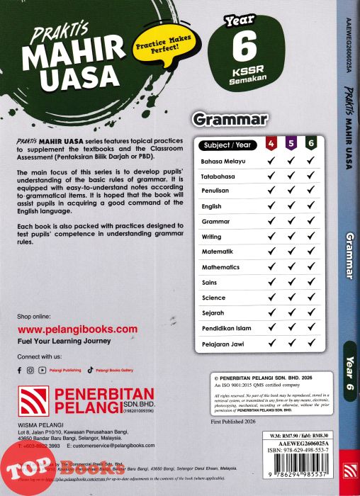[TOPBOOKS Pelangi] Praktis Mahir UASA Grammar Year 6 KSSR Semakan (2026)