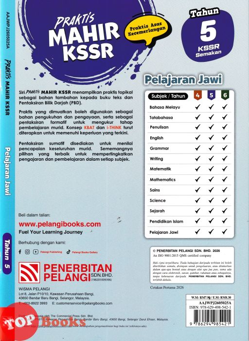 [TOPBOOKS Pelangi] Praktis Mahir Pelajaran Jawi Tahun 5 KSSR Semakan (2026)