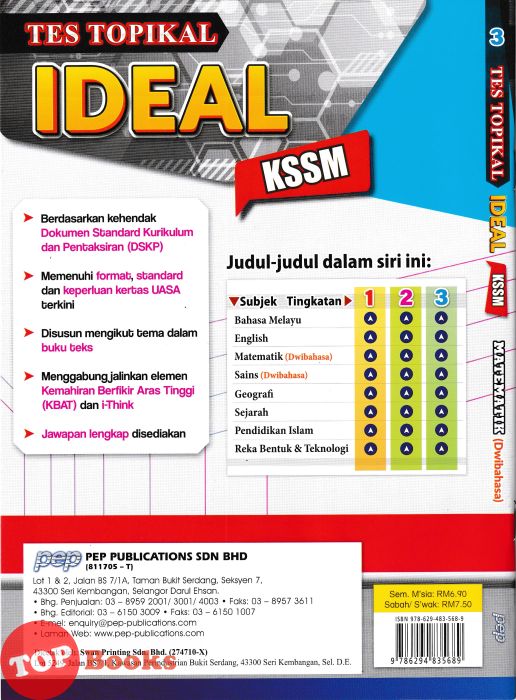 [TOPBOOKS PEP] Tes Topikal Ideal Matematik Tingkatan 3 KSSM Dwibahasa (2025)