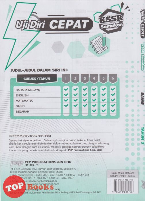 [TOPBOOKS PEP] Uji Diri CEPAT PBD Sains Tahun 3 KSSR Semakan (2024)