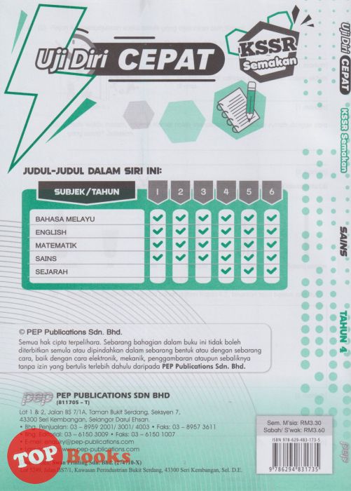 [TOPBOOKS PEP] Uji Diri CEPAT UASA 2.0 Sains Tahun 4 KSSR Semakan (2024)