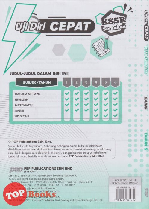 [TOPBOOKS PEP] Uji Diri CEPAT UASA 2.0 Sains Tahun 5 KSSR Semakan (2024)
