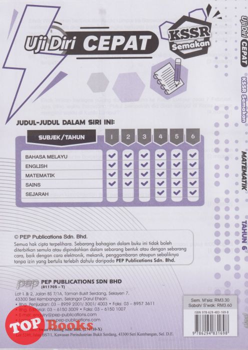 [TOPBOOKS PEP] Uji Diri CEPAT UASA 2.0 Matematik Tahun 6 KSSR Semakan (2024)