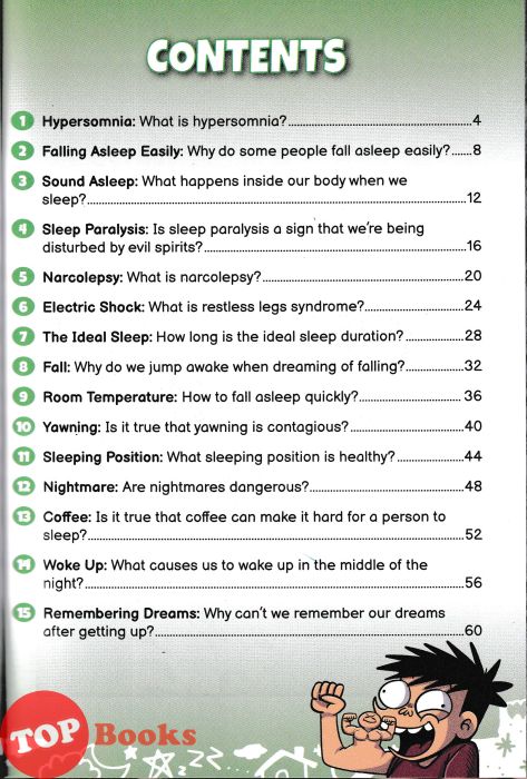 But in this book, you will find answers to questions like "What happens inside our bodies when we sleep?", "Is it true that yawning is contagious?", and "Are nightmares dangerous?" There are many more fascinating questions about SLEEP that have always made us curious.