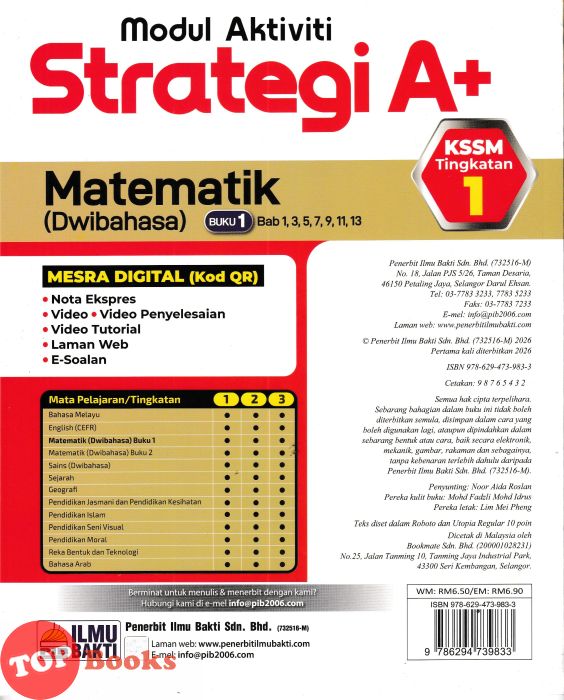 [TOPBOOKS Ilmu Bakti] Modul Aktiviti Strategi A+ Matematik Buku 1 Tingkatan 1 KSSM Dwibahasa (2026)