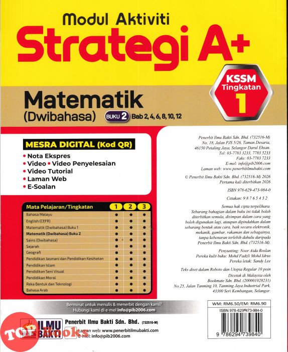 [TOPBOOKS Ilmu Bakti] Modul Aktiviti Strategi A+ Matematik Buku 2 Tingkatan 1 KSSM Dwibahasa (2026)
