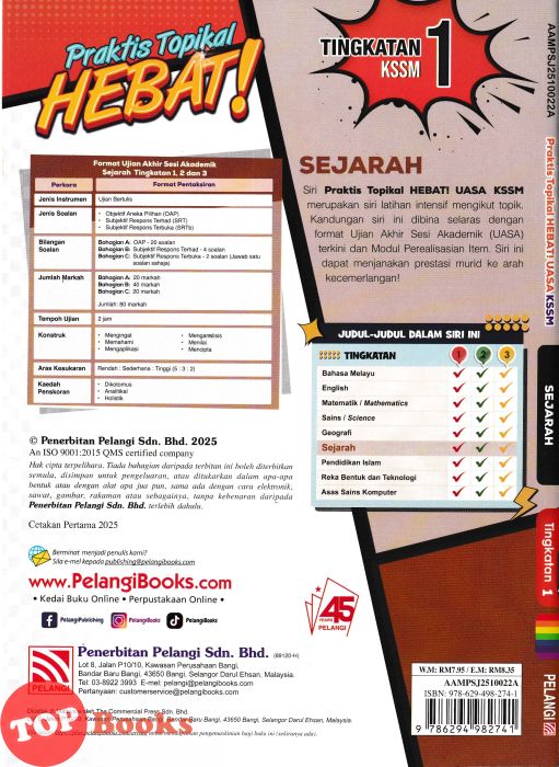 [TOPBOOKS Pelangi] Praktis Topikal Hebat ! UASA Sejarah Tingkatan 1 KSSM (2025)