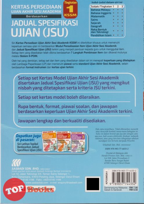 Product Image [TOPBOOKS Sasbadi] Kertas Persediaan UASA JSU Sains Tingkatan 1 KSSM Dwibahasa (2025)