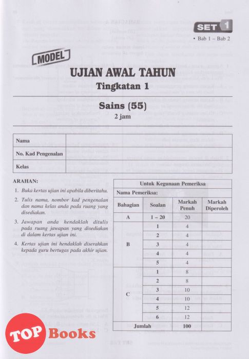 [TOPBOOKS Sasbadi] Kertas Persediaan UASA JSU Sains Tingkatan 1 KSSM Dwibahasa (2025)