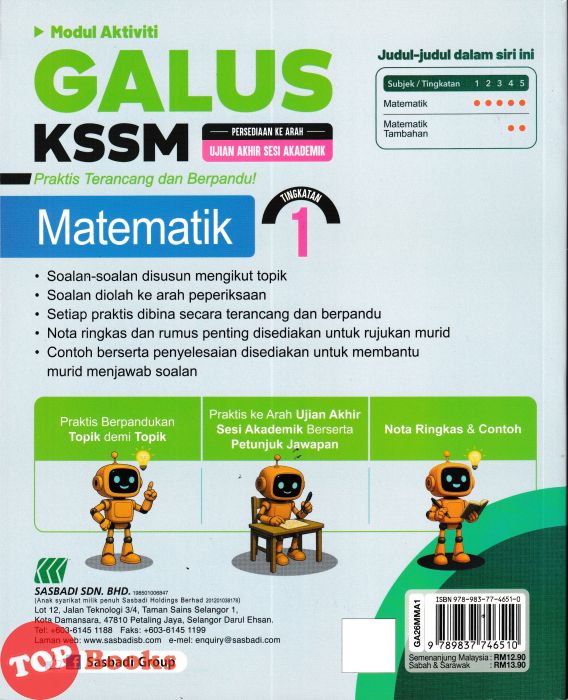 [TOPBOOKS Sasbadi] Modul Aktiviti Galus UASA Matematik Tingkatan 1 KSSM (2026)