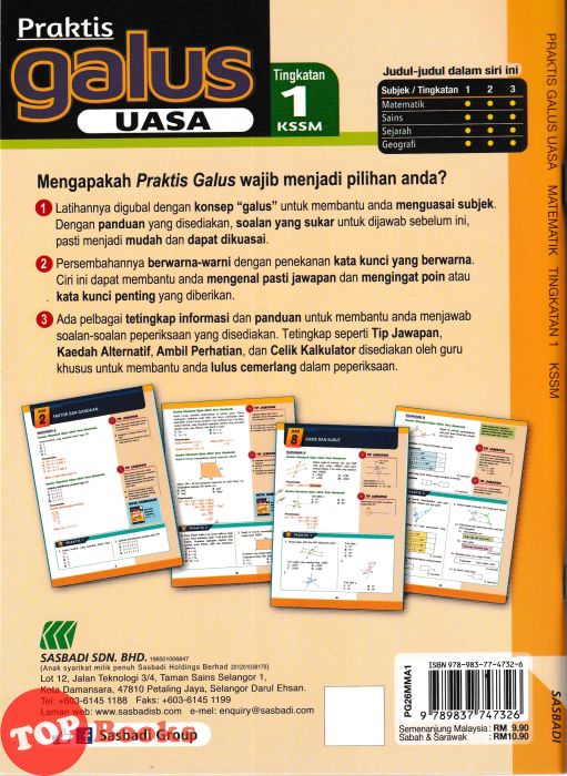 - Latihannya digubal konsep "galus" untuk membantu anda menguasai subjek. Dengan panduan yang disediakan, soalan yang sukar untuk dijawab sebelum ini, pasti menjadi mudah dan dapat dikuasai.