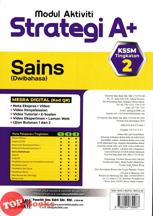 [TOPBOOKS Ilmu Bakti] Modul Aktiviti Strategi A+ Sains Tingkatan 2 KSSM Dwibahasa (2026)