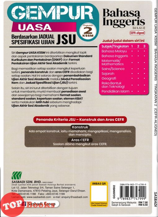 [TOPBOOKS Sasbadi] Gempur UASA JSU Bahasa Inggeris CEFR-Aligned Tingkatan 2 KSSM (2026)