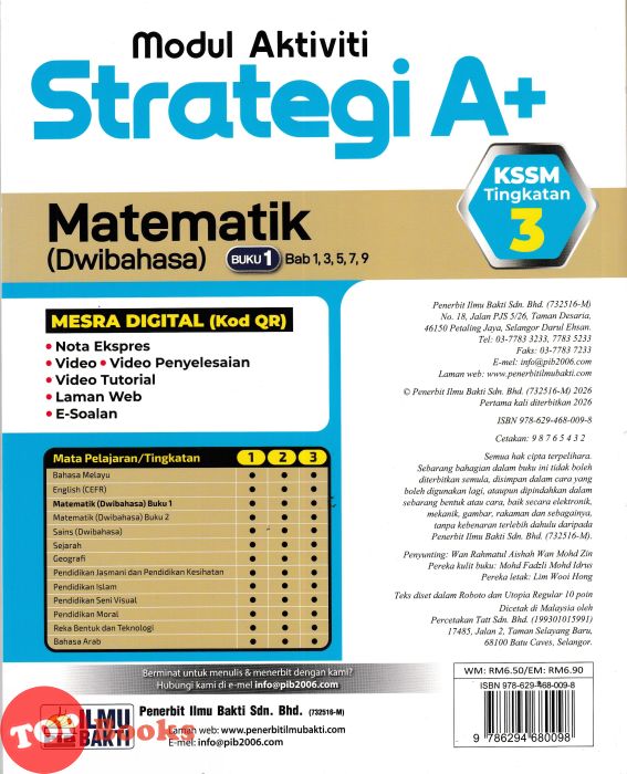 [TOPBOOKS Ilmu Bakti] Modul Aktiviti Strategi A+ Matematik Buku 1 Tingkatan 3 KSSM Dwibahasa (2026)