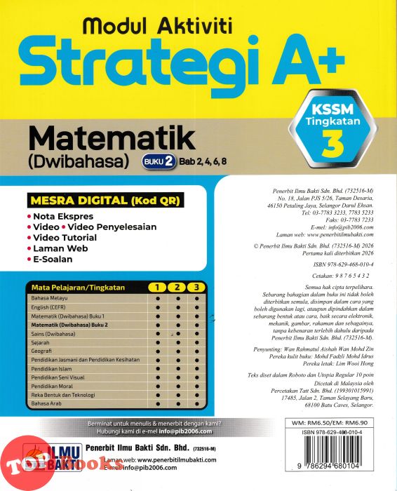 [TOPBOOKS Ilmu Bakti] Modul Aktiviti Strategi A+ Matematik Buku 2 Tingkatan 3 KSSM Dwibahasa (2026)
