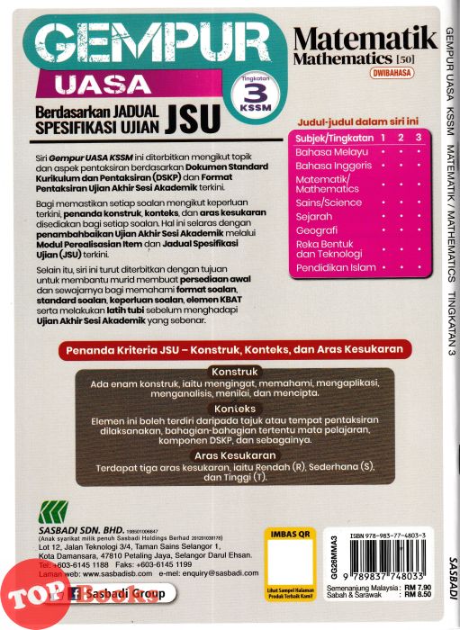 Siri Gempur KSSM ini diterbitkan mengikut topik dan aspek pentaksiran berdasarkan Dokumen Standard Kurikulum dan Pentaksiran (DSKP) dan Fomat Pentaksiran Ujian Akhir Sesi Akademik terkini.