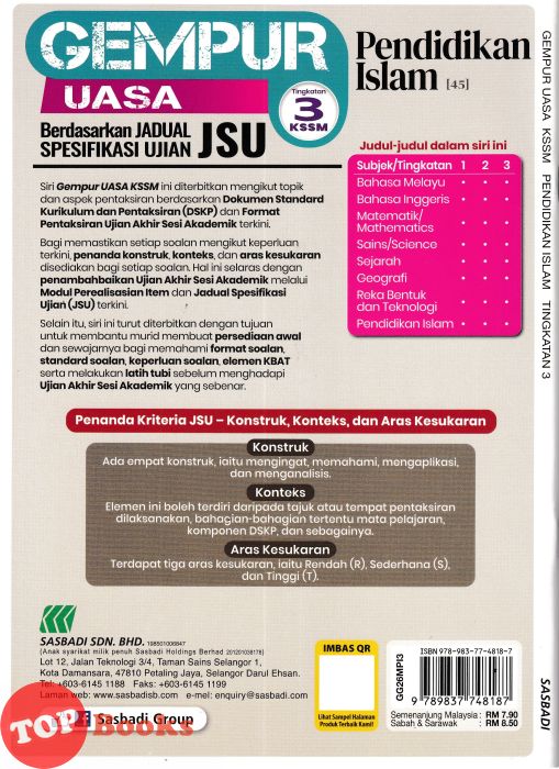Siri Gempur KSSM ini diterbitkan mengikut topik dan aspek pentaksiran berdasarkan Dokumen Standard Kurikulum dan Pentaksiran (DSKP) dan Fomat Pentaksiran Ujian Akhir Sesi Akademik terkini.