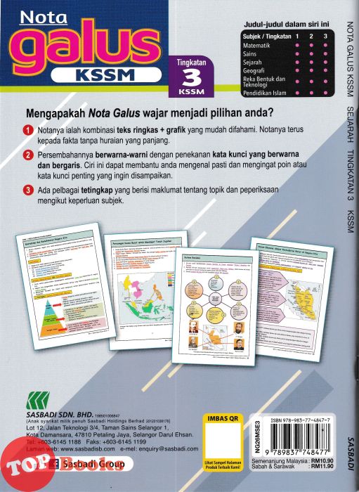 Product Image [TOPBOOKS Sasbadi] Nota Galus KSSM Sejarah Tingkatan 3 KSSM (2026)