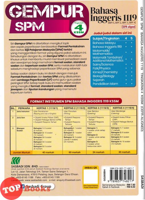 [TOPBOOKS Sasbadi] Gempur SPM Bahasa Inggeris CEFR-Aligned Tingkatan 4 KSSM (2026)