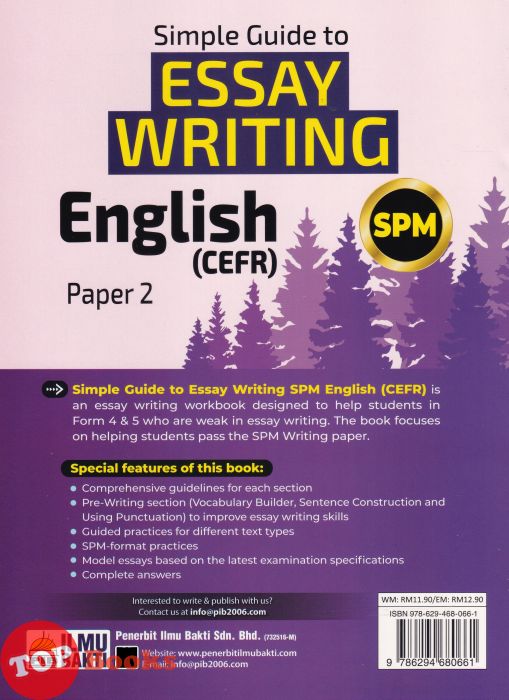 Simple Guide To Essay Writing SPM English (CEFR) Is An Essay Writing Workbook Designed To Help Students In Form 4 & 5 Who Are Weak In Essay Writing. The Book Focuses On Helping Students Pass The SPM Writing paper.