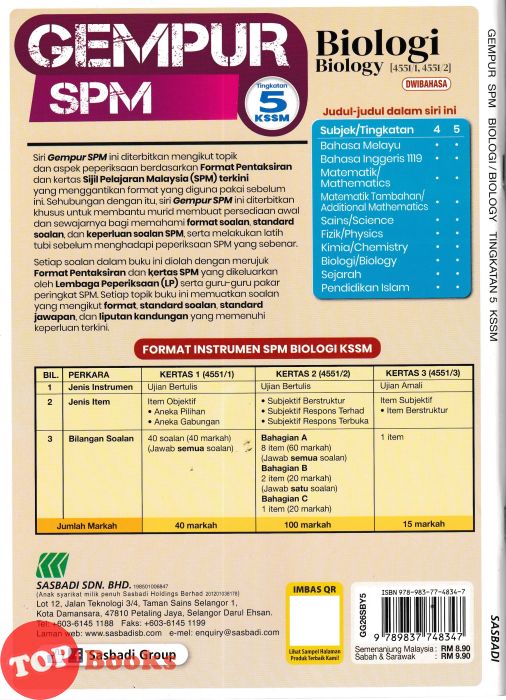 Siri Gempur SPM Ini Diterbitkan Mengikut Topik Dan Aspek Peperiksaan Berdasarkan Format Pentaksiran Dan Kertas Sijil Pelajaran Malaysia (SPM) Terkini Yang Menggantikan Format Yang Diguna Pakai Sebelum Ini. Sehubungan Dengan Itu, Siri Gempur SPM Ini Diterbitkan Khusus Untuk Membantu Murid Membuat Persediaan Awal Dan Sewajarnya Bagi Memahami Format Soalan, Standard Soalan, Keperluan Soalan SPM Serta Melakukan Latih Tubi Sebelum Menghadapi Peperiksaan SPM Yang Sebenar