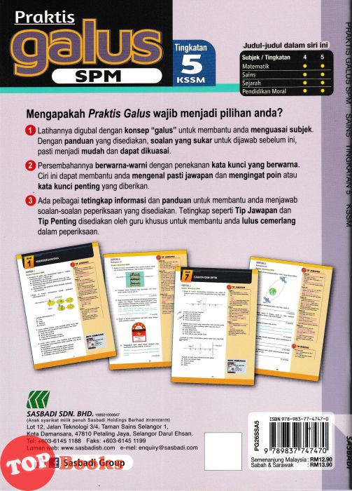 - Latihannya digubal konsep "galus" untuk membantu anda menguasai subjek. Dengan panduan yang disediakan, soalan yang sukar untuk dijawab sebelum ini, pasti menjadi mudah dan dapat dikuasai.