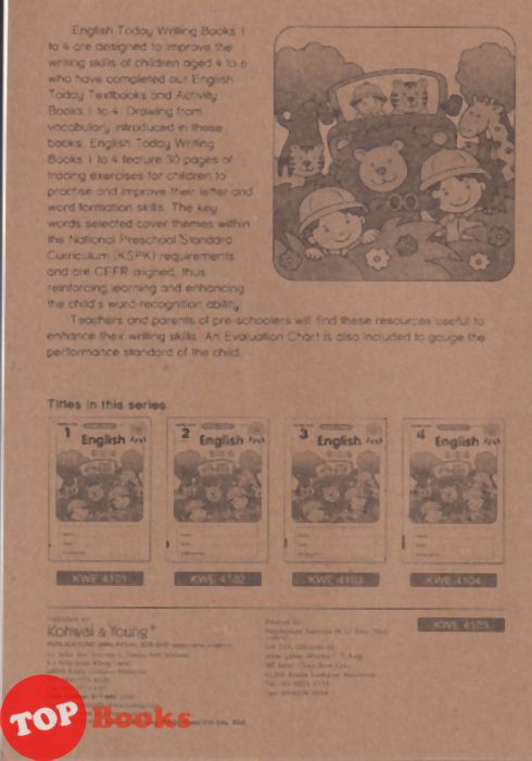English Today Writing Books 1 To 4 Are Designed To Improve The Writing Skills Of Children Aged 4 To 6 Who Have Completed Our English Today Textbooks And Activity Books 1 to 4. Drawing From Vocabulary Introduced In These Books, English Today Writing Books 1 To 4 Feature 30 Pages Of Tracing Exercises For Children To Practise And Improve Their Letter And Word Formation Skills. The Key Words Selected Cover Themes Within The National Preschool Standard Curriculum (KSPK) Requirements And Are CEFR-Aligned, Thus Reinforcing Learning And Enhancing The Child's Word-Recognition Ability
