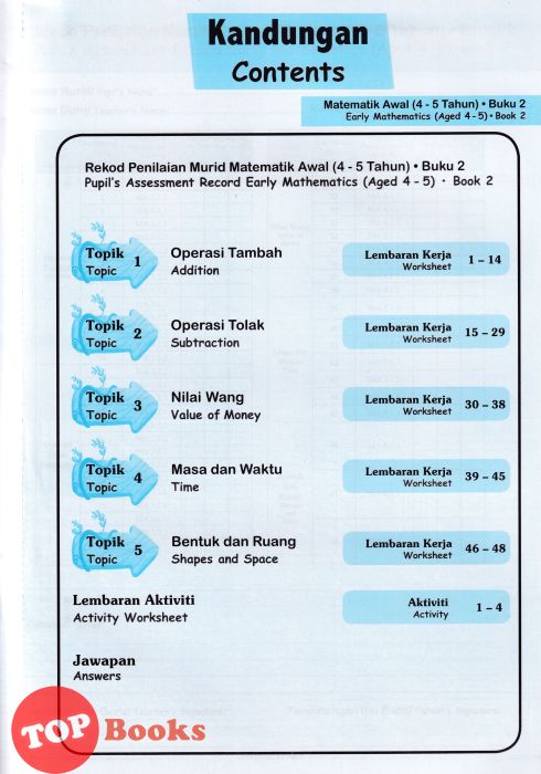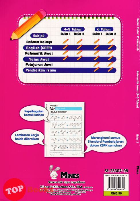 [TOPBOOKS Mines Kids] Modul Pintar Prasekolah Matematik Awal 4-5 Tahun Buku 2 KSPK Semakan Dwibahasa (2024)