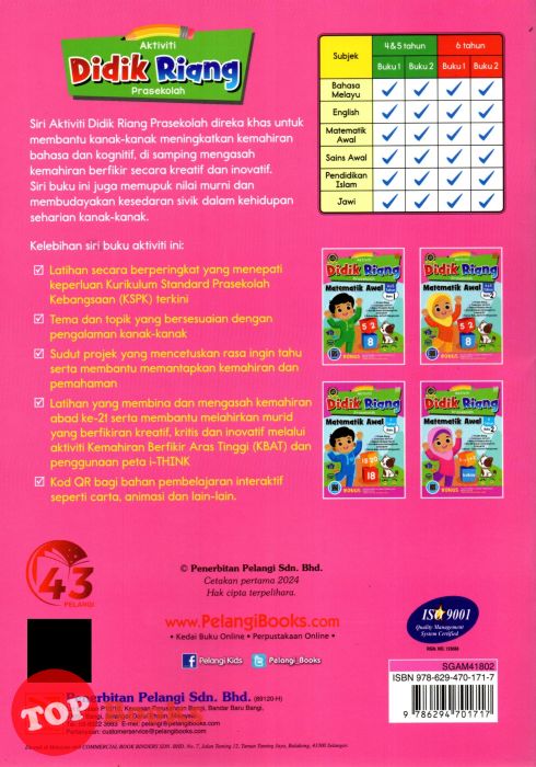 [TOPBOOKS Pelangi Kids] Aktiviti Didik Riang Prasekolah Matematik Awal 4 & 5 Tahun Buku 2 (2024)