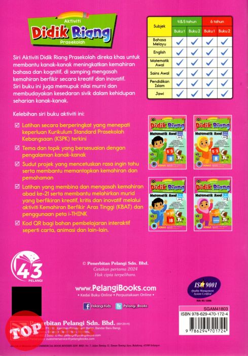 [TOPBOOKS Pelangi Kids] Aktiviti Didik Riang Prasekolah Matematik Awal 6 Tahun Buku 1 (2024)