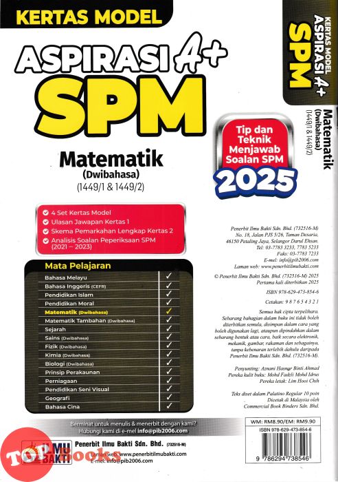 [TOPBOOKS Ilmu Bakti] Kertas Model Aspirasi A+ SPM Matematik Dwibahasa (2025)