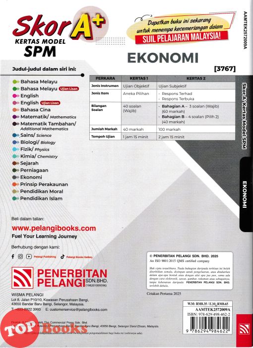 [TOPBOOKS Pelangi] Skor A+ Kertas Model SPM Ekonomi Kertas 1 & Kertas 2 (2025)