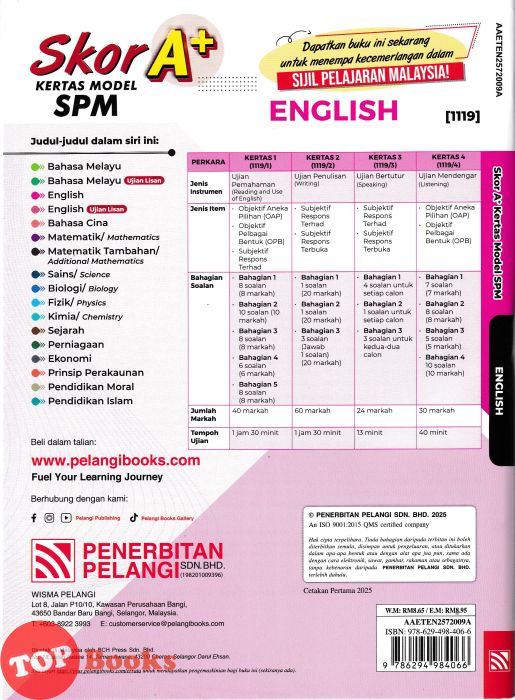 [TOPBOOKS Pelangi] Skor A+ Kertas Model SPM English Kertas 1, Kertas 2, Kertas 3 & Kertas 4 (2025)