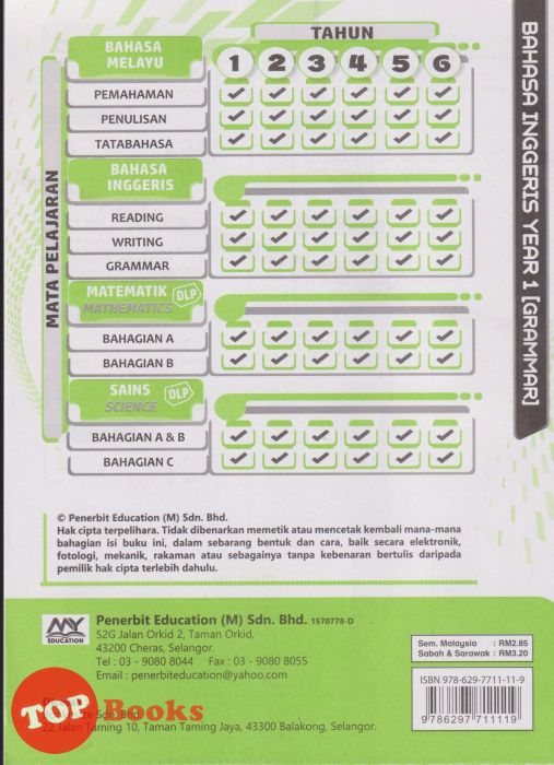 [TOPBOOKS Education] Modul Cepat Bahasa Inggeris Grammar Year 1 Semakan KSSR (2025)