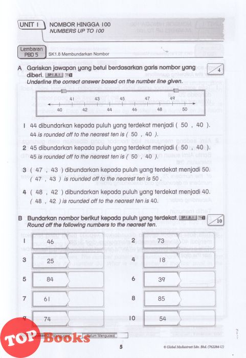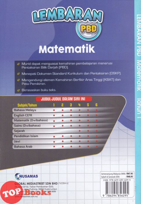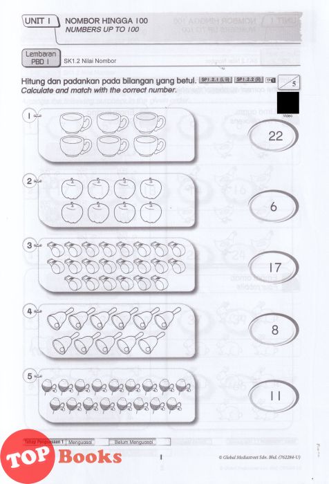 [TOPBOOKS Nusamas] Lembaran PBD Matematik Tahun 1 Dwibahasa (2026)