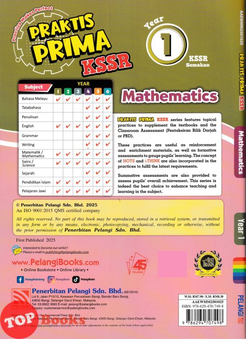 [TOPBOOKS Pelangi] Praktis Prima KSSR Mathematics Year 1 KSSR Semakan (2025)