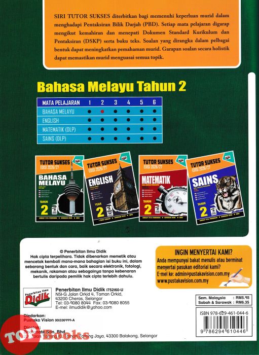 [TOPBOOKS Ilmu Didik] Tutor Sukses Bahasa Melayu Tahun 2 Semakan KSSR (2026)
