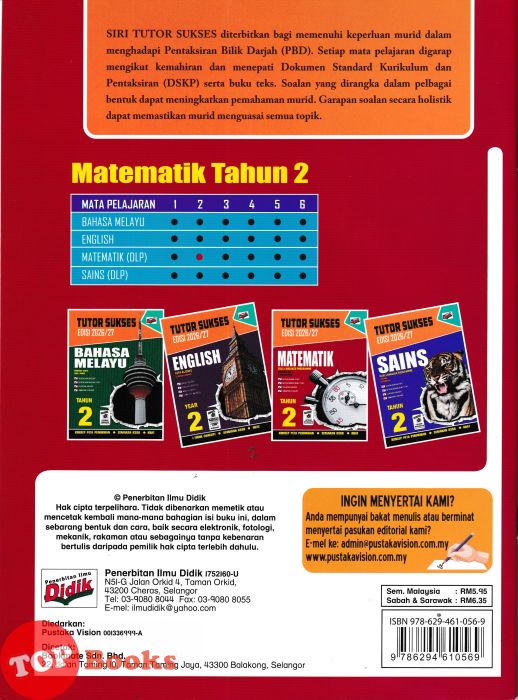 [TOPBOOKS Ilmu Didik] Tutor Sukses Matematik Tahun 2 Semakan KSSR DLP (2026)