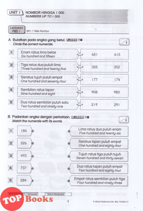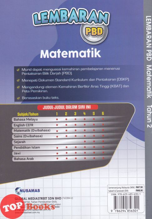 [TOPBOOKS Nusamas] Lembaran PBD Matematik Tahun 2 Dwibahasa (2026)