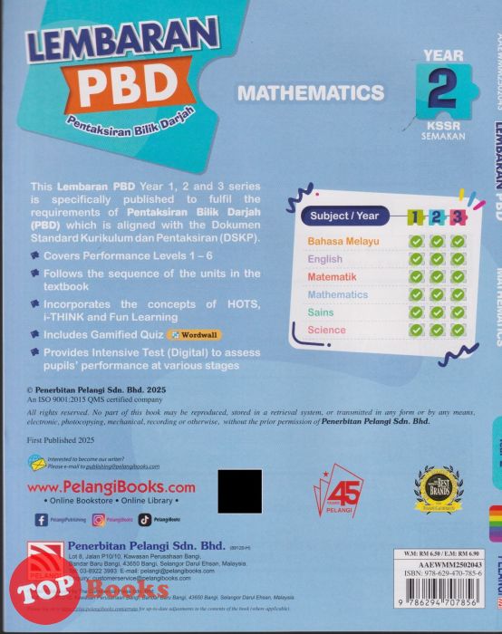 Product Image [TOPBOOKS Pelangi] Lembaran PBD Mathematics Year 2 KSSR Semakan (2025)