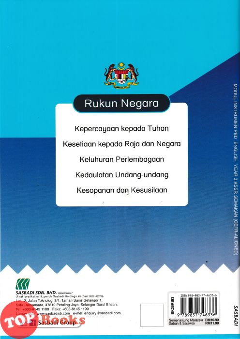[TOPBOOKS Sasbadi] Modul Instrumen PBD English CEFR-Aligned Year 3 KSSR Semakan (2026)